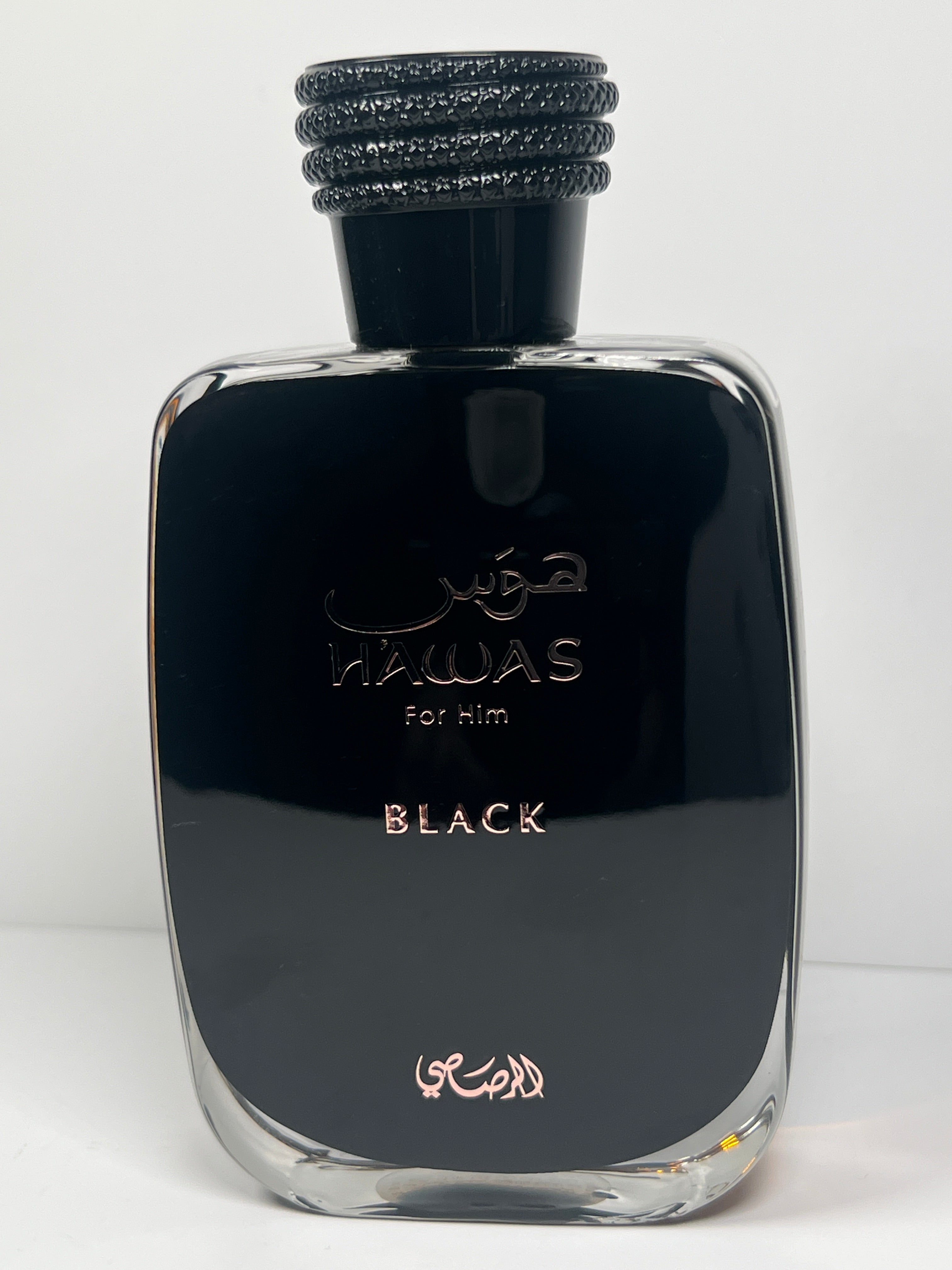 "Hawas Black by Rasasi is an aromatic woody fragrance for men. Hawas Black was launched in 2024. Top notes are Bergamot, Pineapple and Grapefruit; middle notes are Patchouli, Cedarwood and Jasmine; base notes are Oakmoss, Woody Notes and Amber." Fragrantica