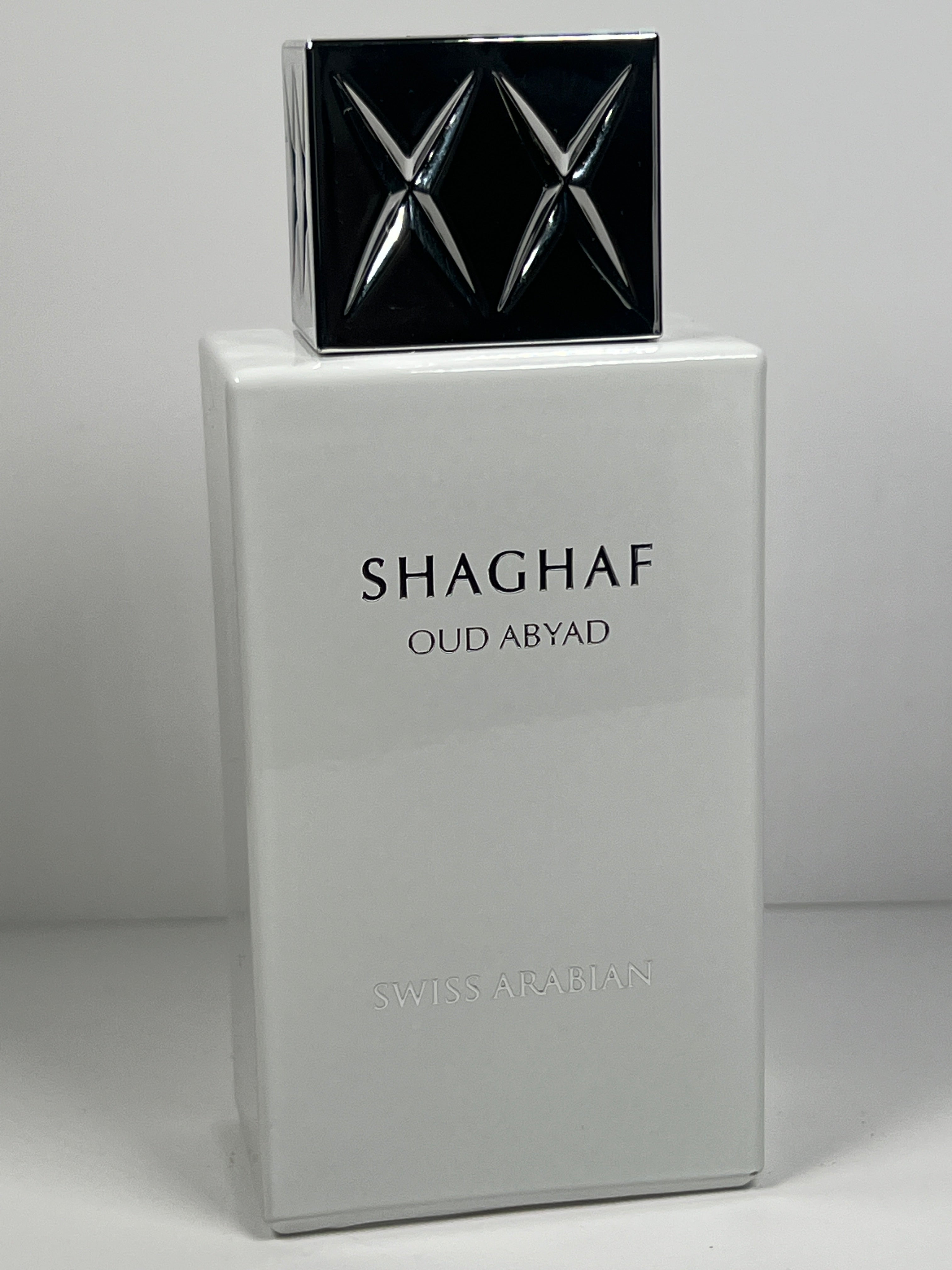 "Shaghaf Oud Abyad by Swiss Arabian is a fragrance for men. Shaghaf Oud Abyad was launched in 2024. Top notes are Bergamot, Lemon and Oregano; middle notes are Incense, Amber and Agarwood (Oud); base notes are Leather, Musk and Patchouli."